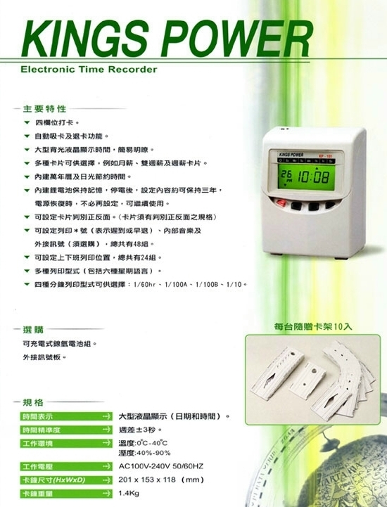 KingsPower打卡鐘-->KINGS POWER 打卡鐘 KP-101S 商品查詢代碼:QK79791