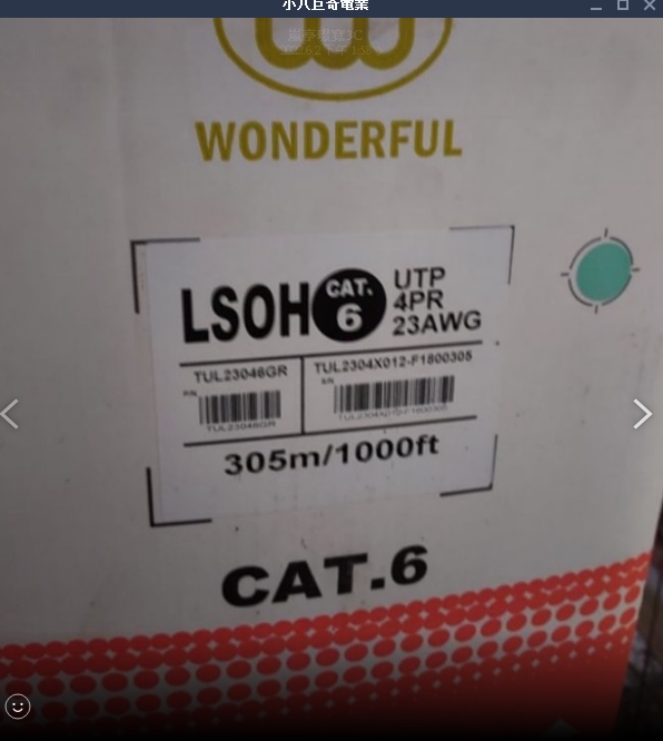 網路線-->WONDERFUL萬泰CAT.6 C6 LOSH 【305米 / 箱】純銅A級網路線 是23AWG 商品查詢代碼:QK79960