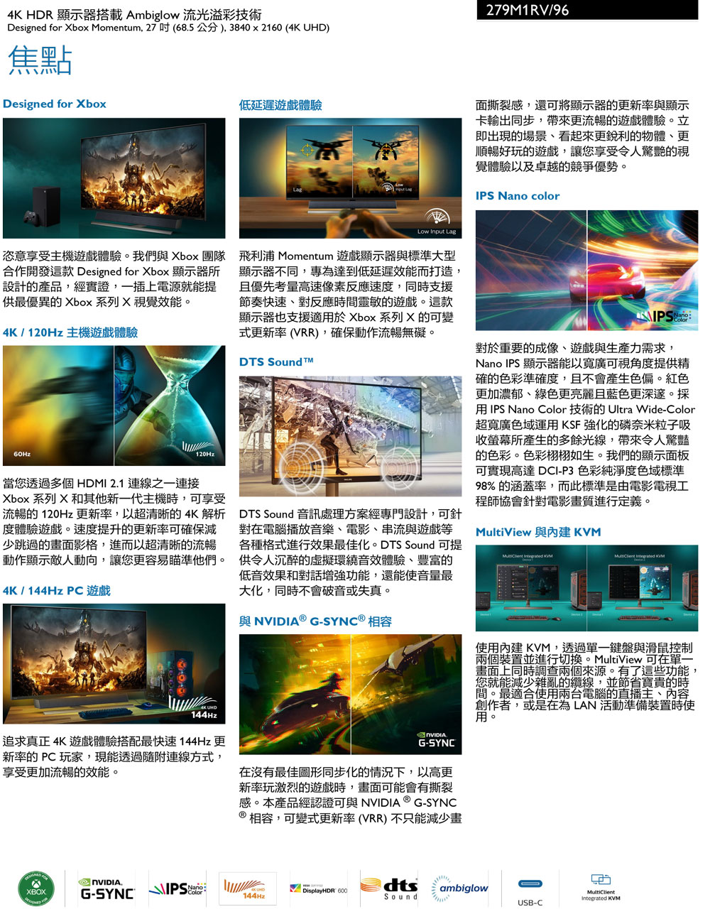 型號:PHILIPS 27型 279M1RV IPS(黑)(寬)螢幕顯示器