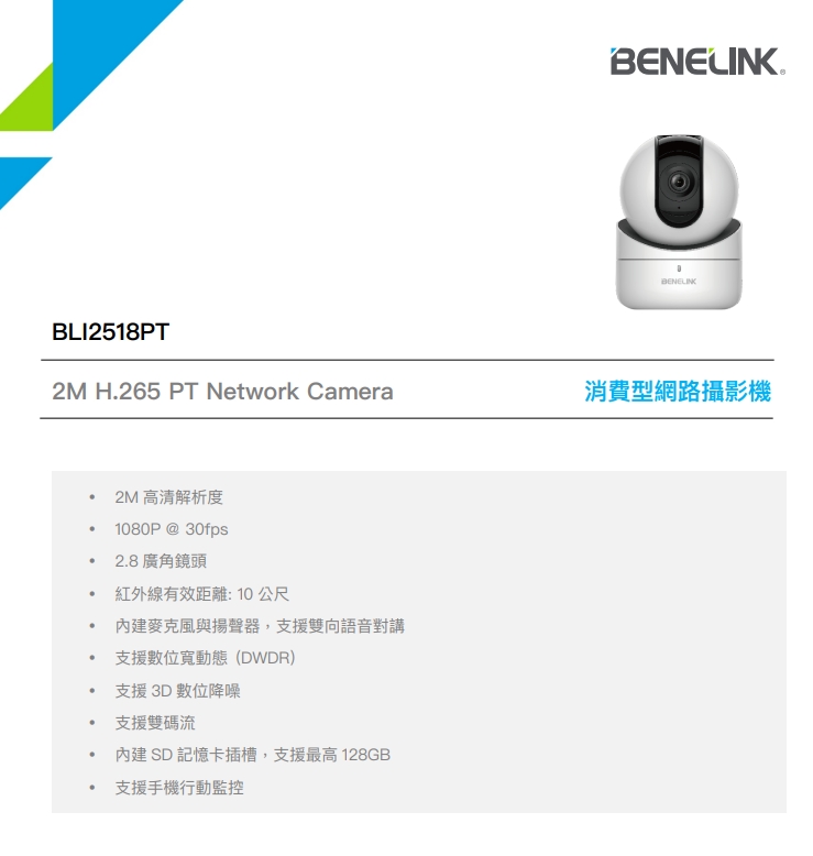 型號:BLI2518PT 欣永成 BENELINK上下左右網路攝影機    供貨狀況: