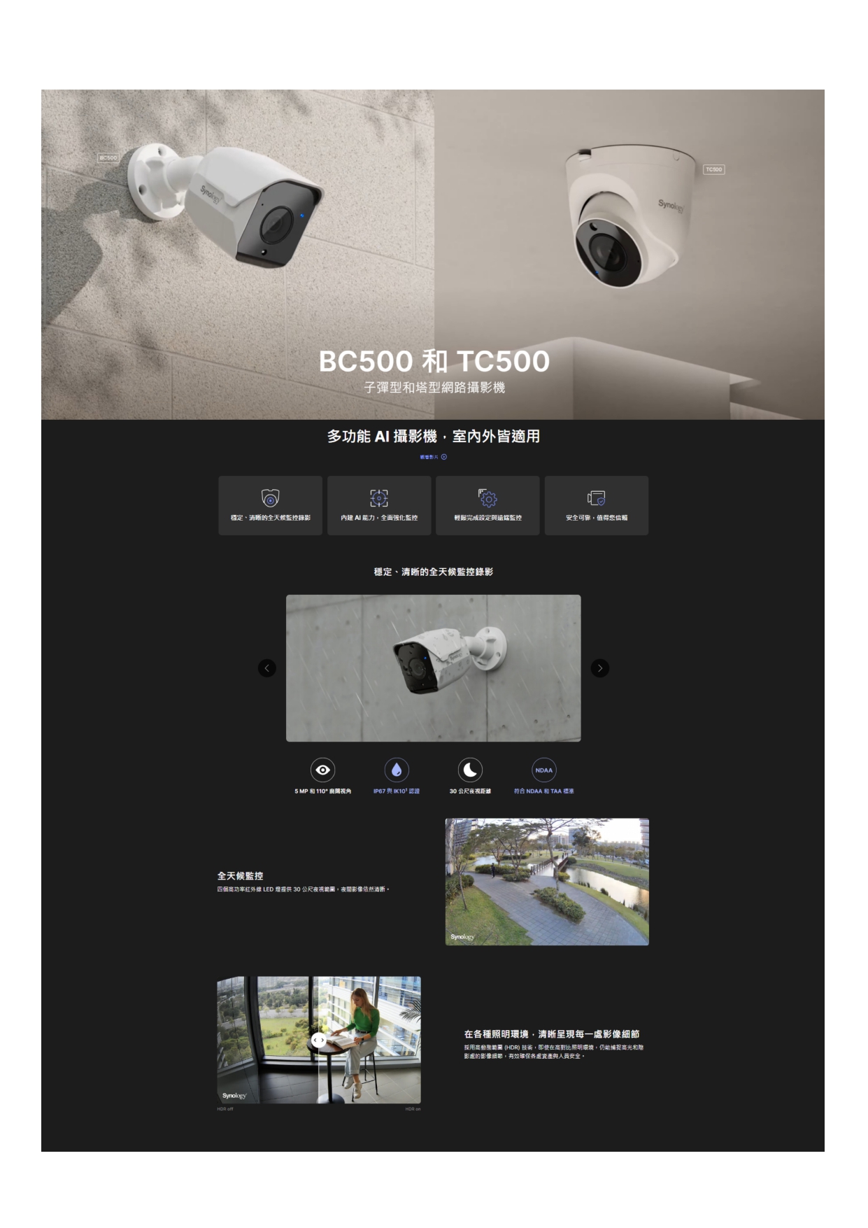 Synology 群暉 BC500 500萬像素AI智能(槍型)網路攝影機/3年保固全台最低價0910090333