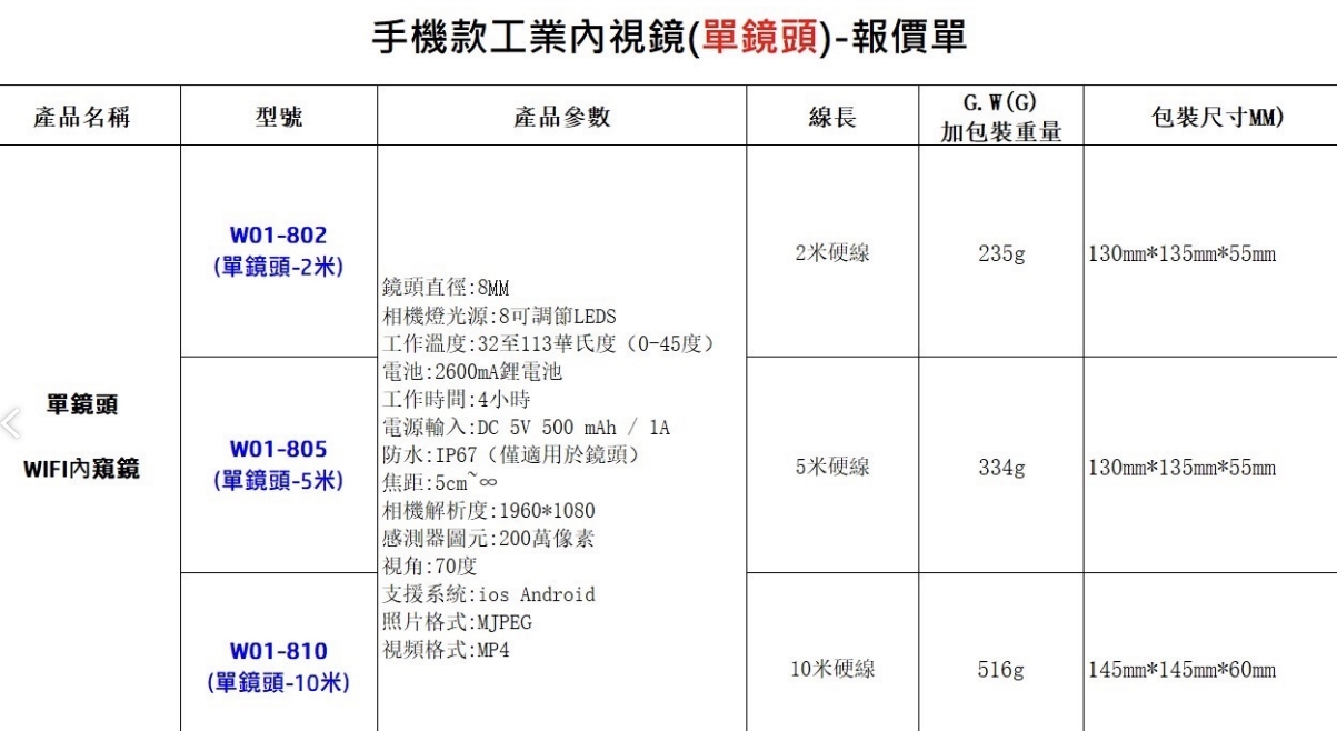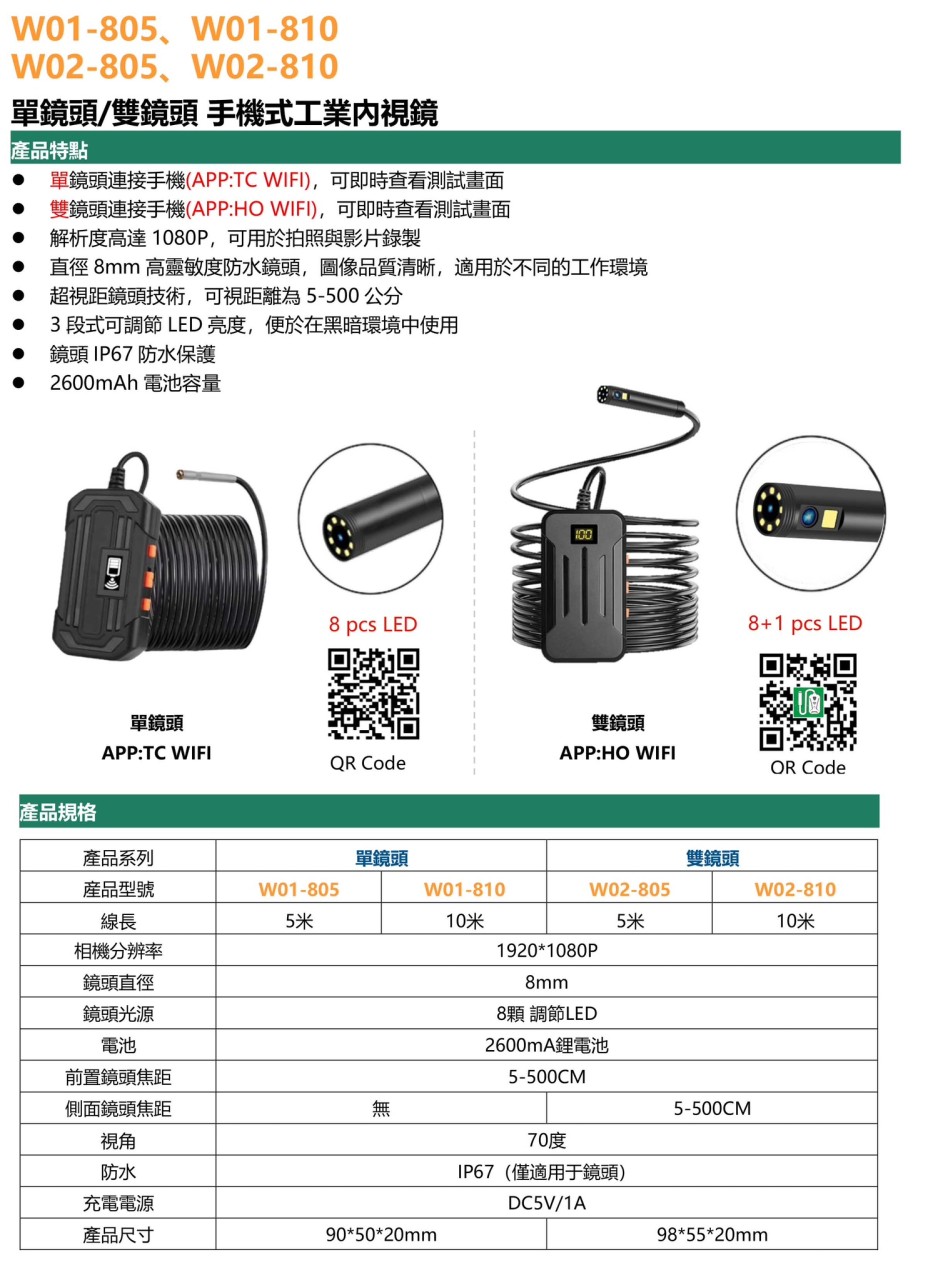 型號:W02-805 5米 手機式工業內視鏡    供貨狀況: